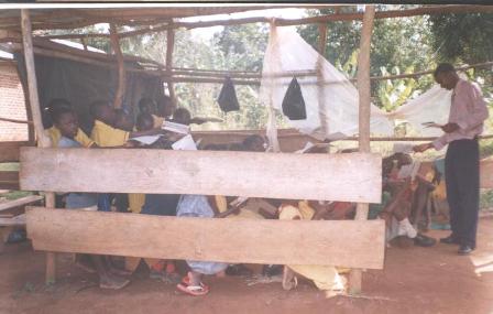 A teacher teaching in a Makeshift Classroom |